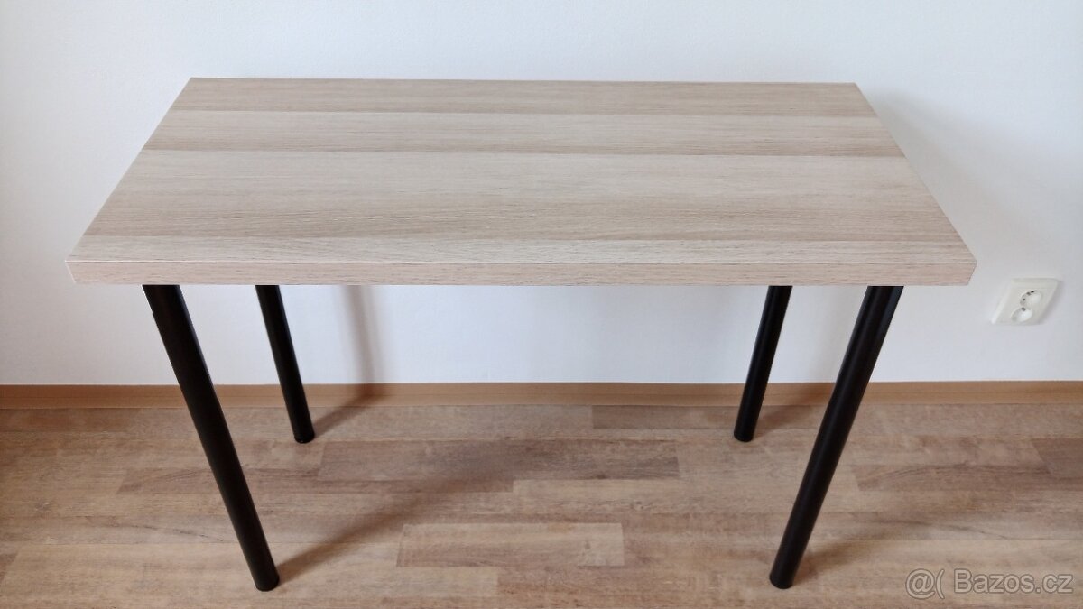 Prodám nový stůl zn. IKEA - deska "LINNMON" - 100x45 cm, světlý dub + nohy "ADILS" - výška 70 cm, kov, černé.