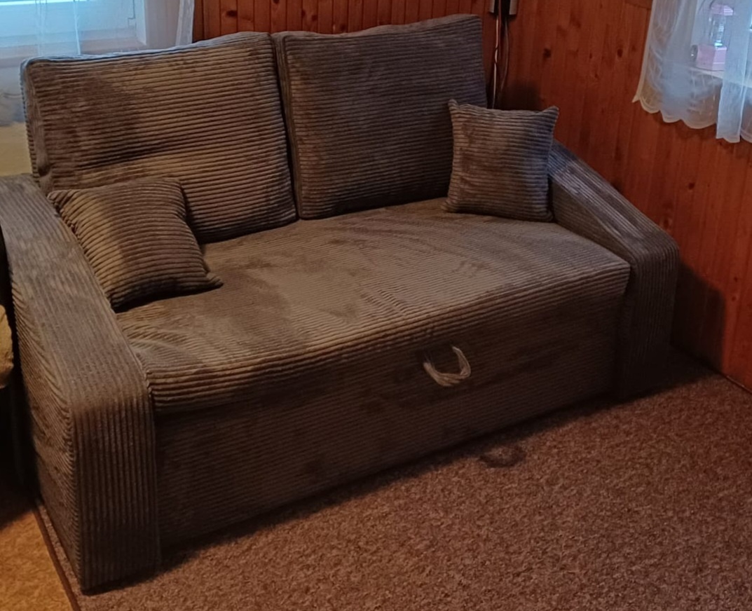 Prodám rozkládací pohovku 2 roky stará ,používaná příležitostně na chatě š 150 x v 78 x h 90 , výška sedu 40. Spaci plocha cca 200x130