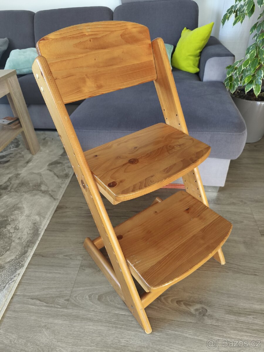 Rostoucí židle, masiv, běžné známky používání, nastavitelný podsedak i podnožky, pouze osobní vyzvednutí, po domluvě možne předání i v Plzni
