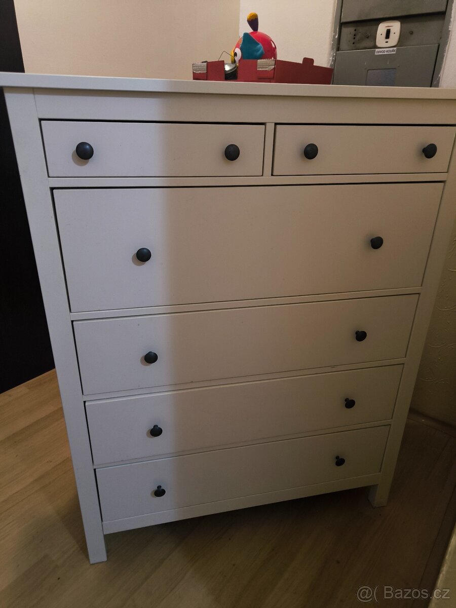 Komoda IKEA Hemnes se 6 zásuvkami- bílá lesklá - [27.4. 2026]Prodamnkomodu Hemnes odstín bílá lesklá, již se v této barvě neprodává, plně funkční, nepropadlé šuplíky, pouze kosmetické známky užívání, nejvýraznější levý bok viz. foto, k vyzvednutí na Praze 8 Kobylisy, nebo lze dovézt za 500 kc po Praze, popříp ...