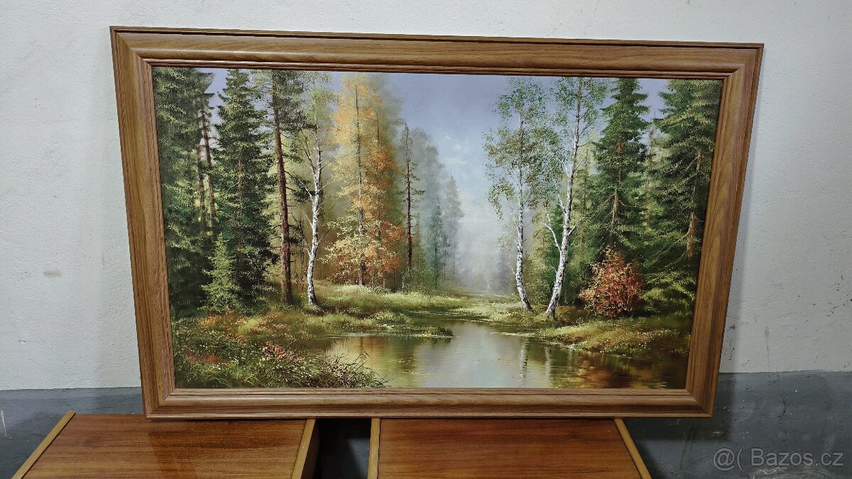 Prodám obrazy, výborný stav. Rozměry: Krajina: 112 x 72 cm. Loď tmavá plachta: 78 x 58 cm. Loď bílá plachta: 75 x 55 cm.