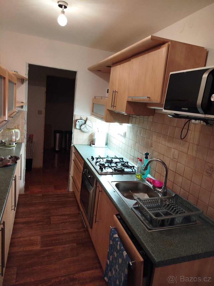 kuchyňská linka 171 - [22.4. 2026]cca 330 cmKuchyňská linka včetně ledničky digestoře , trouby se sklokeramickou deskou a dřezu. hezký stav
