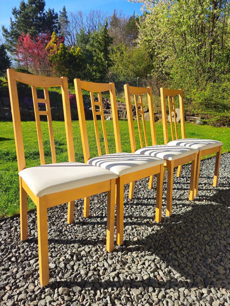 Bukové jídelní židle TON, 4 pěkné kusy. - [23.4. 2026]Celodřevěné jídelní bukové židle ve velmi pěkném původním stavu nevyžadujícím renovaci. Česká výroba TON v roce 1975. Židle prošli před prodejem kompletním servisem a jsou připravené ihned k použití.