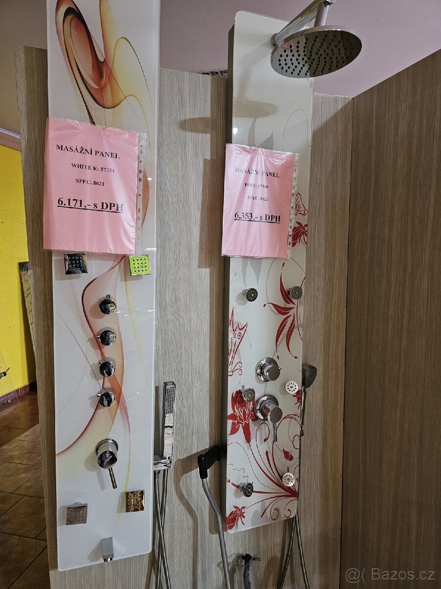 Nabízím nikdy nepoužitý sprchový masážní panel. Panel ovsahu horní a ruční sprchu a trysky.