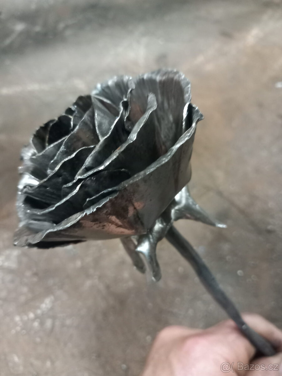 Ručně kovaná růže vhodná jako dar či na pietní místo. Ruže je tvořena dvacetipěti okvětními lístky a dvěma listy na stonku.