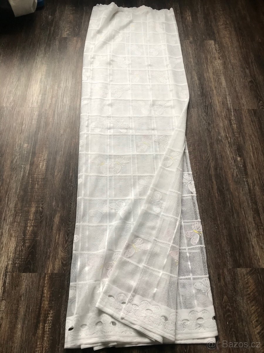 Bílá záclona, pěkný jemný vzor, levně - [19.4. 2026]Prodám bílou záclonu, jemný pěkný vzor, vypadá pěkně pověšená na okně, rozměry výška 105 cm, délka 300 cm, levně