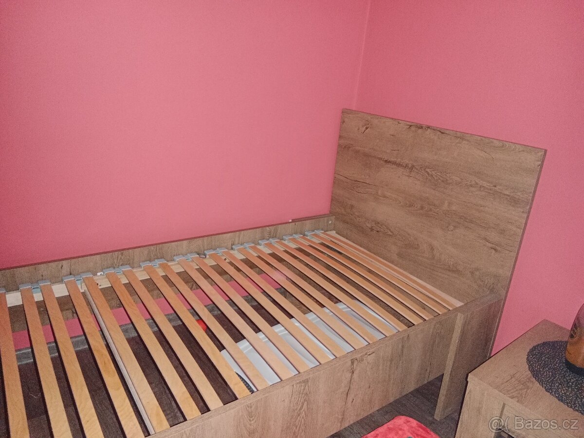 Postel, možnost dopravy - [23.4. 2026]Rám postele s laťkovým roštem 90x200 cm.