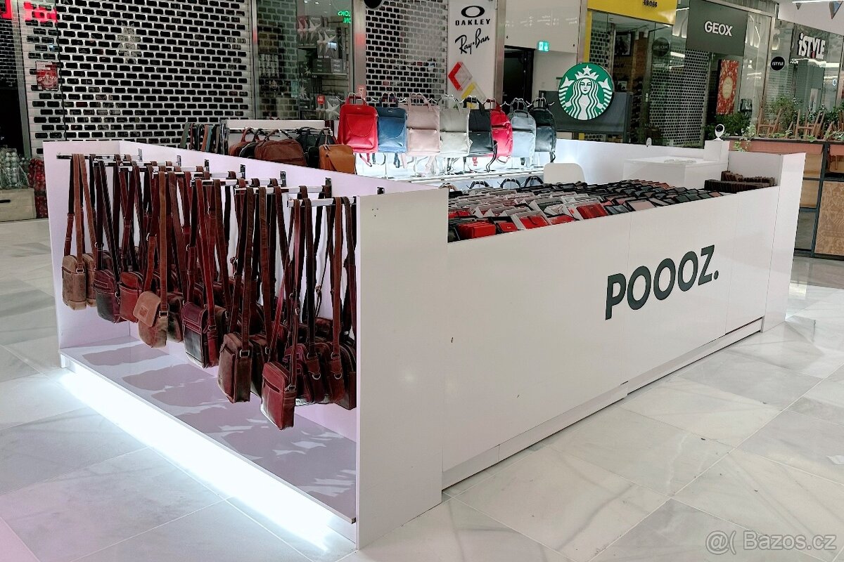 Prodám variabilní prodejní stánek, který jsem používal na prodej kožené galanterie v pasážích obchodních center – lze pomoci různých háčku použít na cokoliv jiného. Vše ve vysokém laminátové lesku s led osvětlením. Stánek obsahuje boční pódium pro kufry, boční modul s háky, 3 ks pultů, 3 ks Chromových T modulu – z jedné strany jsme používali na police z druhé strany na háky, 6 ks polic, 36 ks chromových háku, 6 ks chromových vzpěr. Původní pořizovací cena 200 000 Kč . Mám celkem 5 těchto stánku, které lze modulárně zvětšovat zmenšovat dle potřeby.