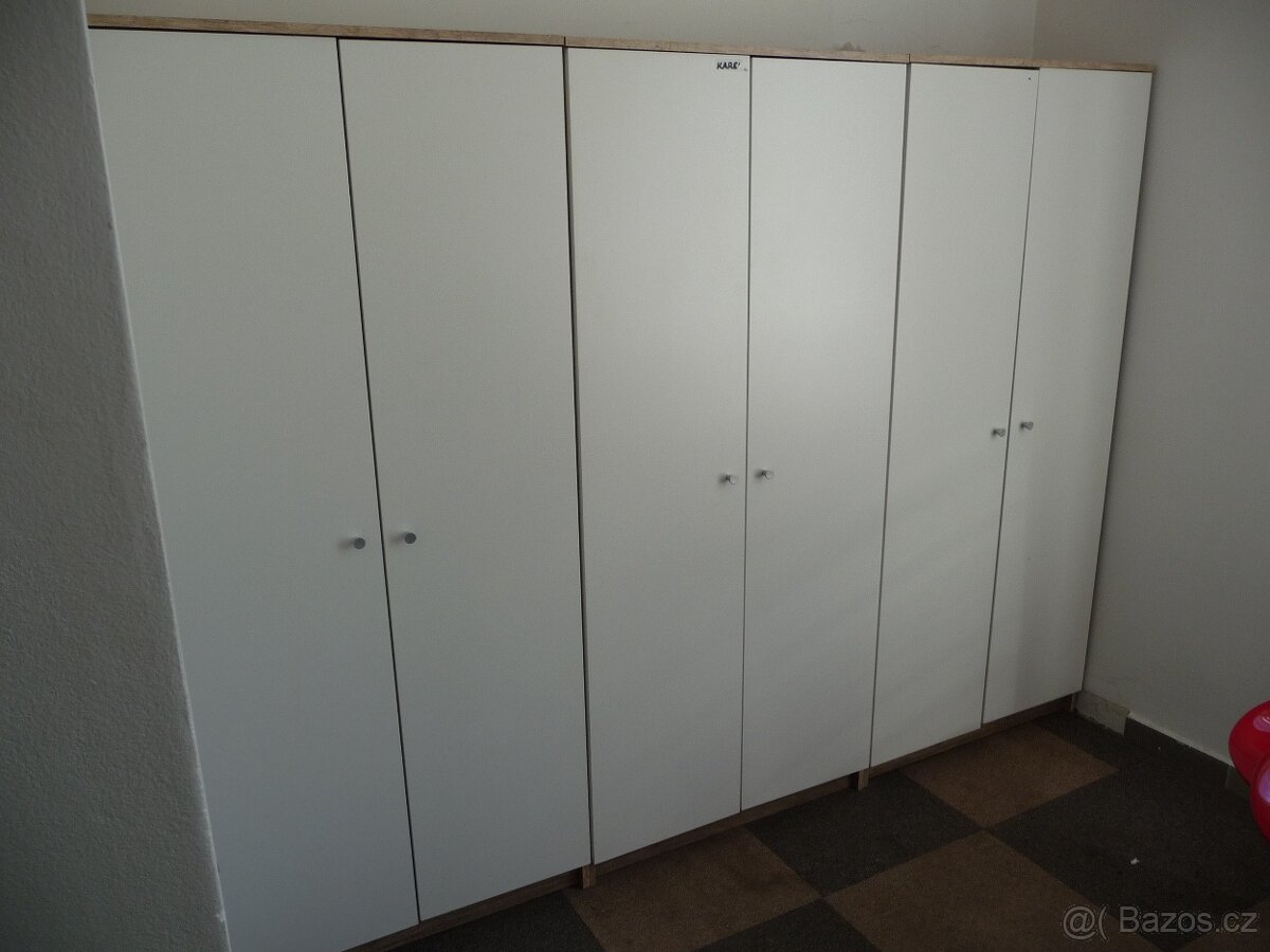 Šatní skřínky - [23.4. 2026]Dobrý den, prodám 7ks šatních skříněk, jsou velmi zašlé, pár z nich popsané a 1 je prasklá ze zadní strany.