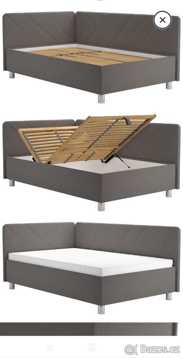 Prodám postel 120x200 s 2 x čelem postele. Polohovatelný rošt.