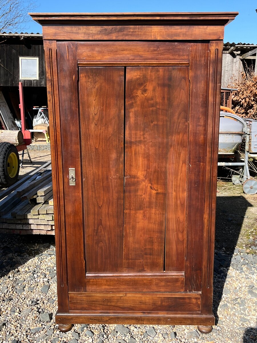 Prodám starožitnou skříň. Šířka 105 cm, hloubka 57 cm, výška 188 cm.
