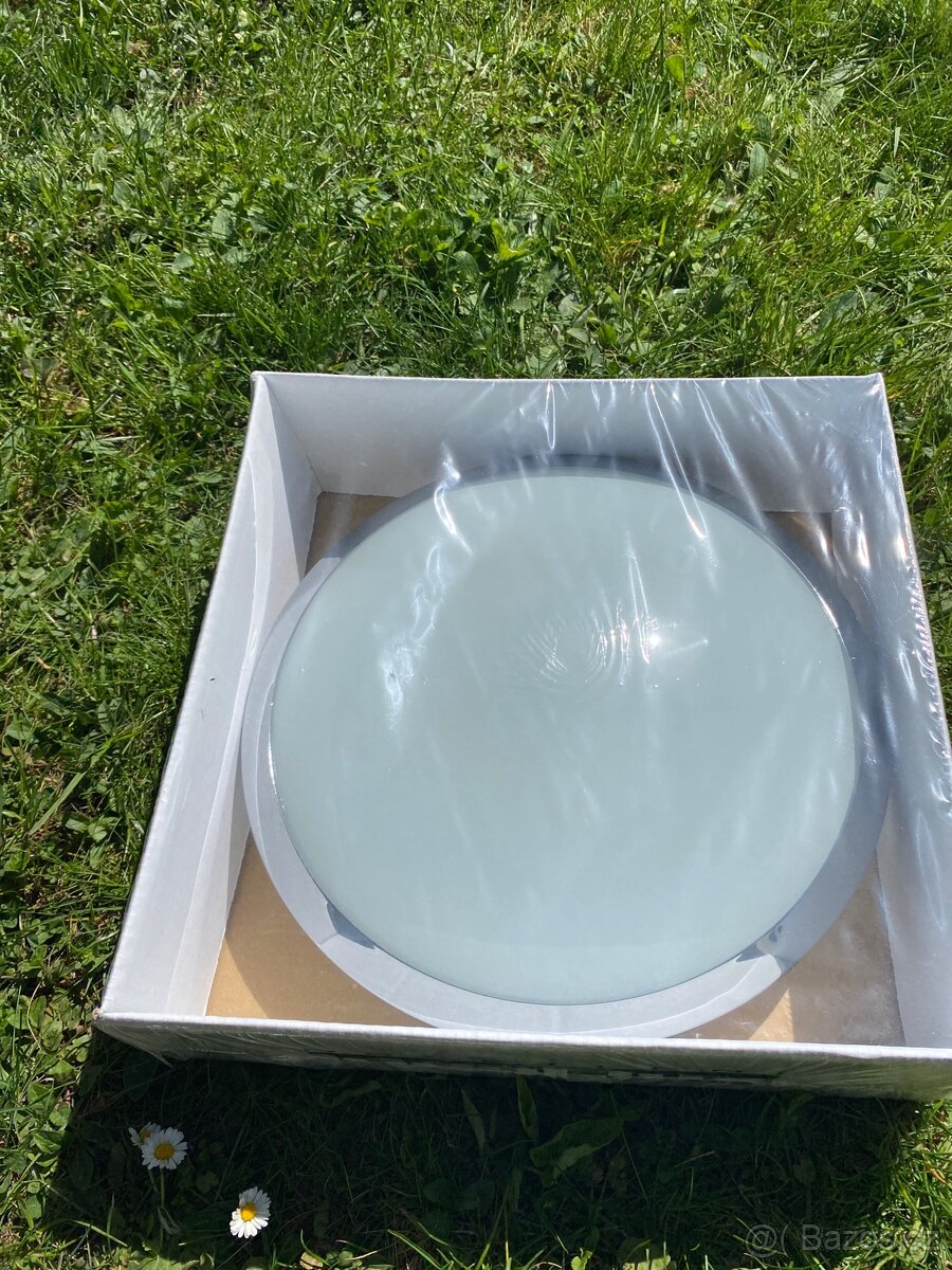 Nerozbalené světlo vhodné na strop či na zeď. Sklněné se stříbrným rámem