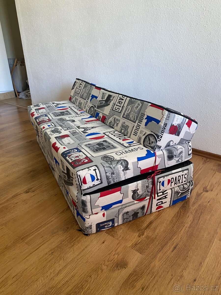 Rozkládací gauč z pěnové matrace, pratelný povlak s motivem Paris