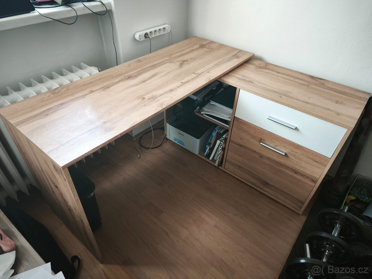 Rohový psací stul - [24.4. 2026]Rohový psací stůl (L tvar) se zásuvkami