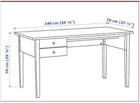 Psací stůl IKEA nový v balení, barva přírodního dřeva (borovice) + černé zásuvky