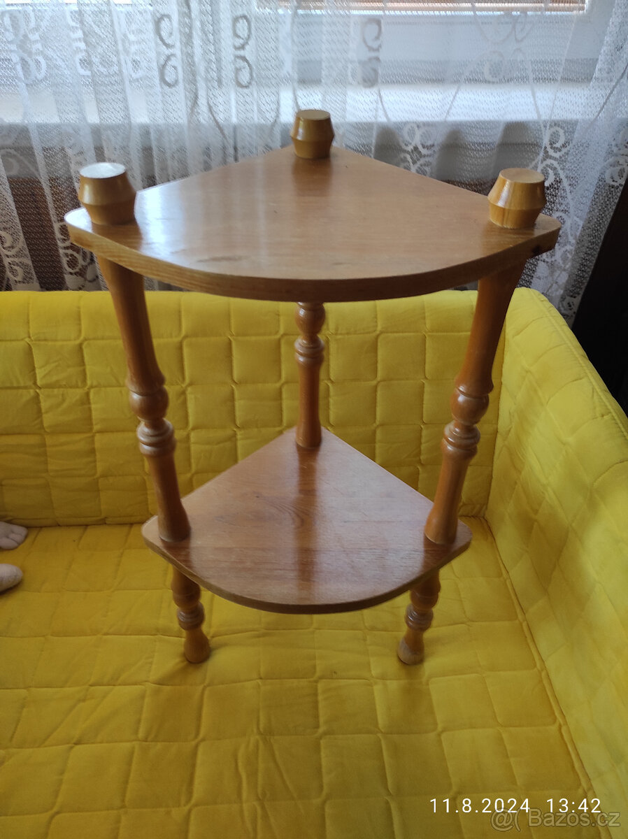 rohovou poličku. Dřevěná, dobrý stav, ale je možné i k renovaci. Dá se rozebrat, je šroubovací. Odběr Úvaly, nebo po Praze dovezu.