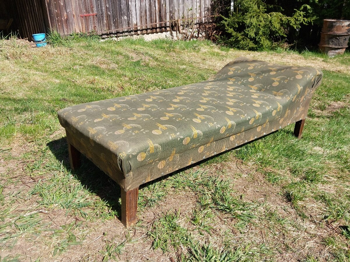 Prodám starožitnou lenošku v původním stavu. Čalounění není nikde poškozeno, stačí pouze vyčistit a lenoška může sloužit.