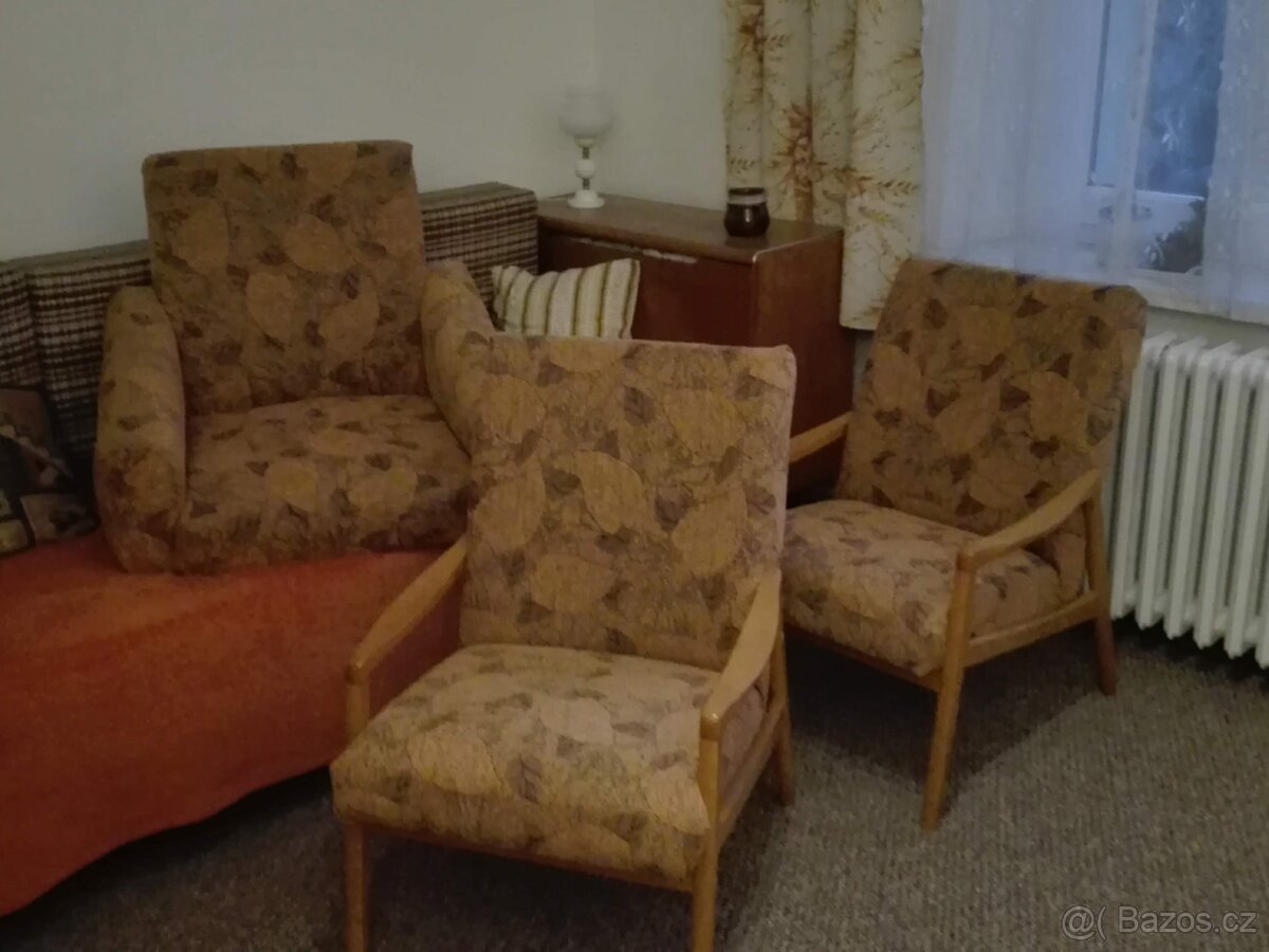 Dvě zrestaurovaná křesla, s dřevěnými područkami, ks 2000 Kč