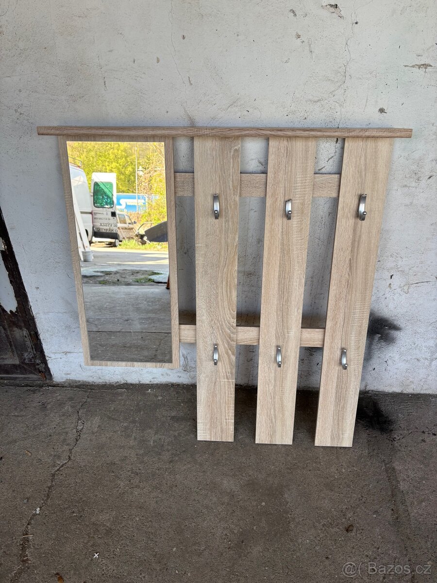 Prodám věšák v barvě Sonoma viz.foto. Délka 100cm,výška 114cm. Osobní odběr Ústí nad Labem.