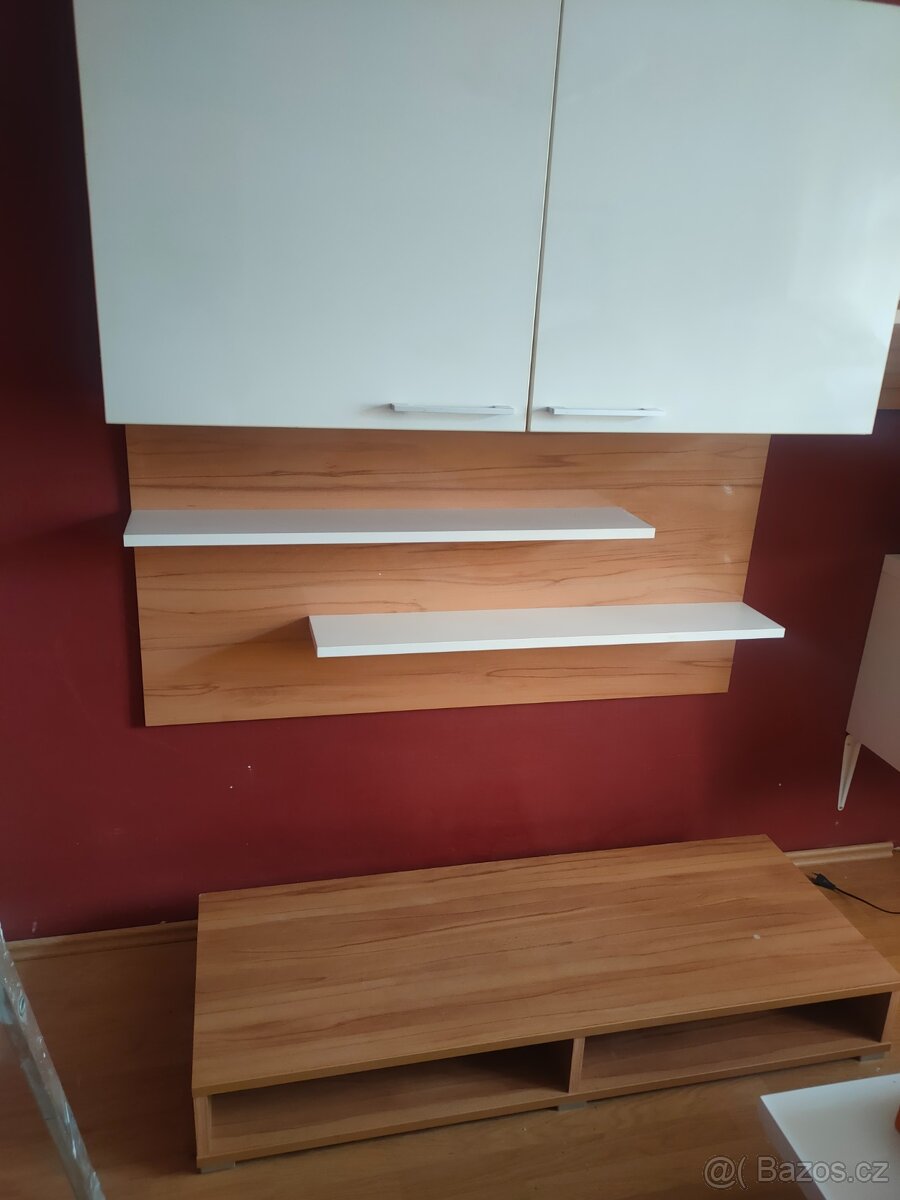 Nizka komoda delka 140cm , sire cca 52cm. Vzadu otvory na kabely na komode mala svetlejsi tecka