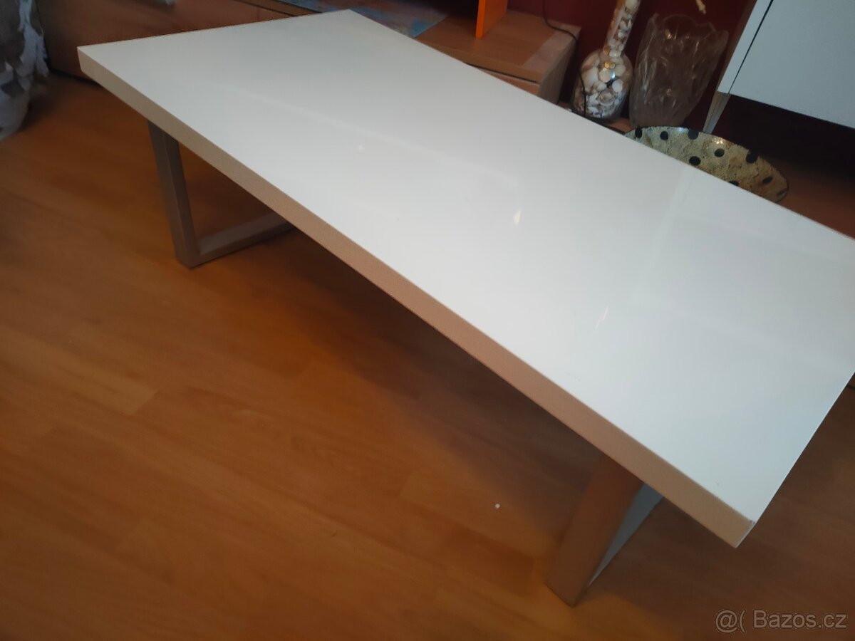 Stav velmi dobrý, jen vpravo dole mini oderky viz foto, bily lesk, nohy stříbrne, delka 120cm, osobni odběr Praha Stodůlky.