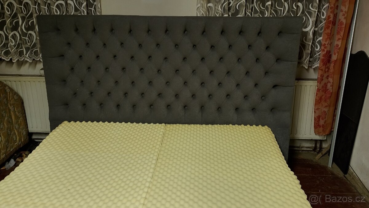 Prodám moderní postel chestrfiled ve velice zachovalém stavu s uložným prostorem rozměry : 180x200 cm výška čela 140 výška postele 60 cm doprava dohodou