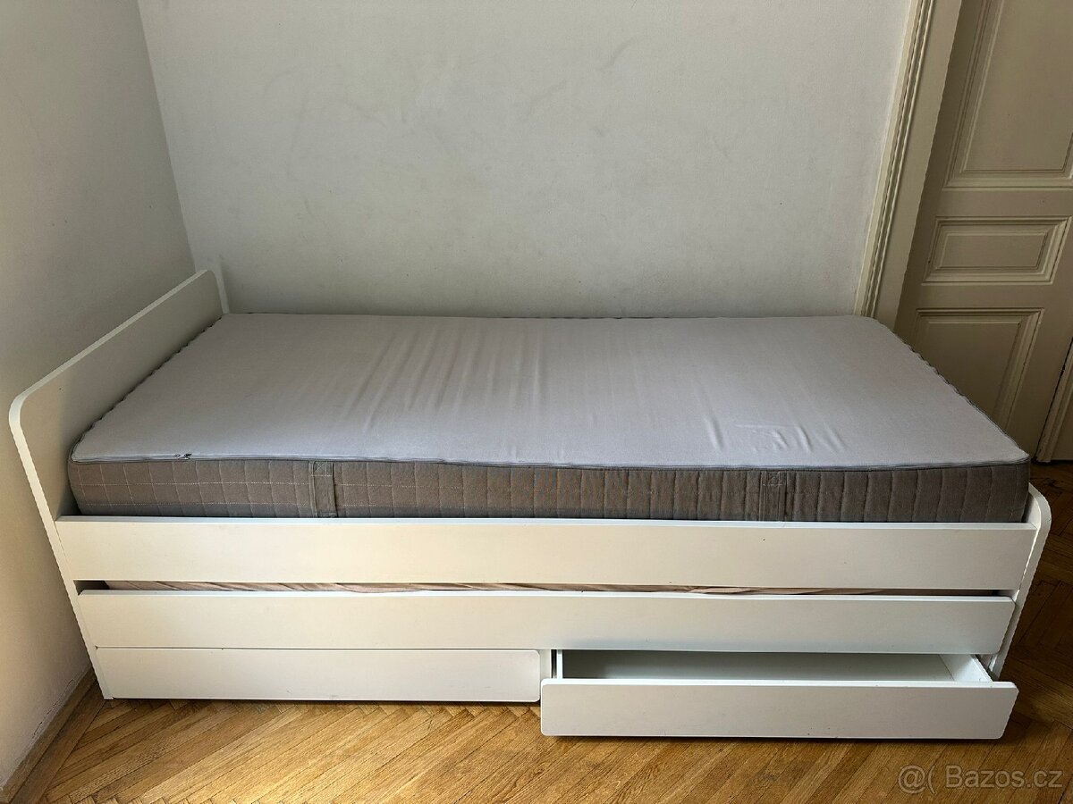 Rozkládací postel 90x200, dvě matrace, rošt, úložný prostor. IKEA PC 20000,-