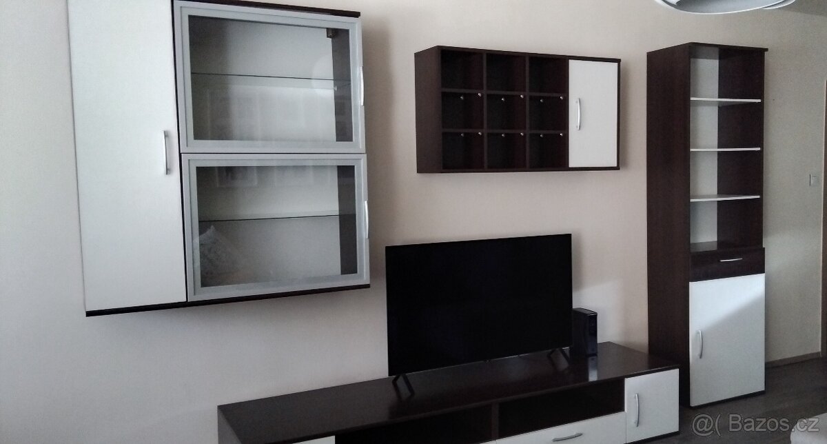 Obývací stěna - [25.4. 2026]Prodám obývací stěnu - dvě skříňky, jeden stolek pod TV a nástěnnou poličku. Stěna je v krásném stavu, pouze na poličce je rýha - když je pověšená na stěně, není to vidět.
