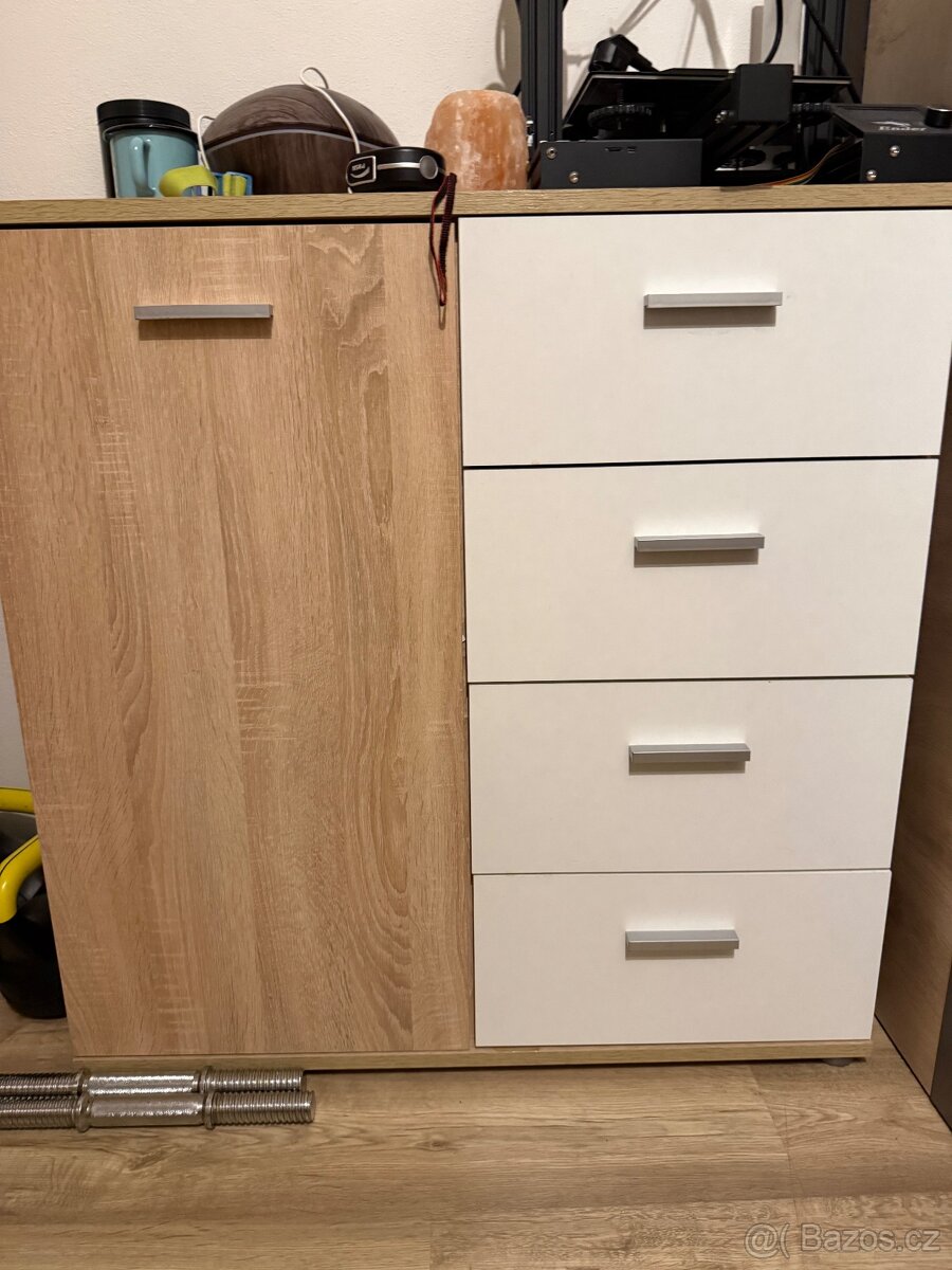 - Vlevo je komoda zdarma, spodní šuplík jde velice špatně otevírat, zbylé dva jsou funkční