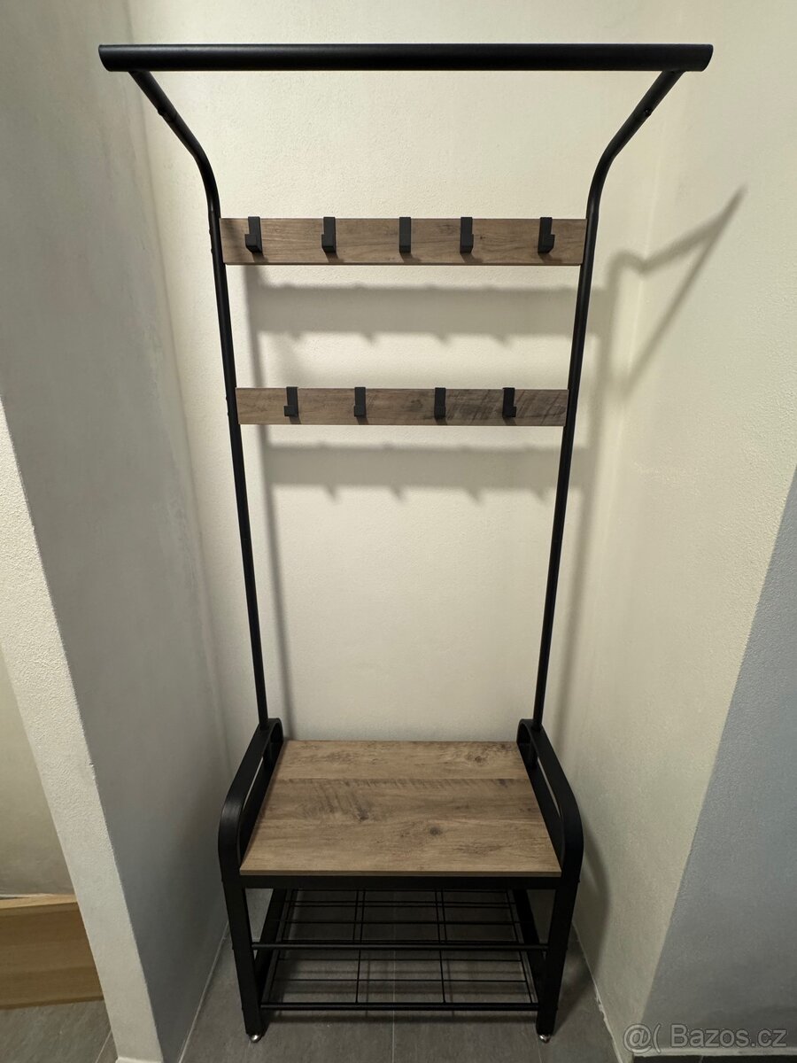Pojízdný věšák na oblečení s lavicí a botníkem - [28.4. 2026]Prodám praktický set – kovový stojan na oblečení na kolečkách + lavice s polstrovaným sedákem a botníkem.