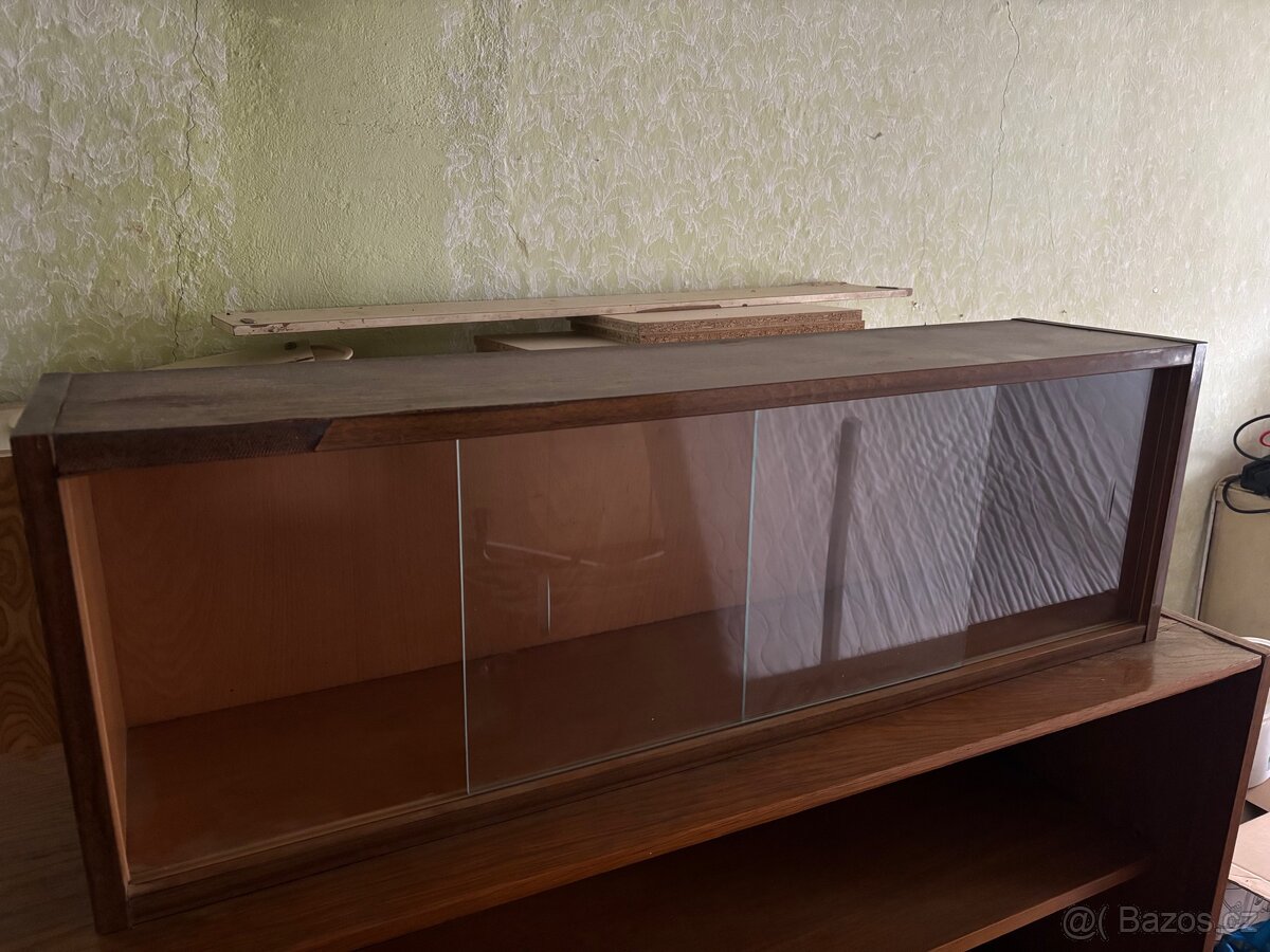 Závěsná knihovnička se skleněný dvířky. Rozměr 100x31x23.