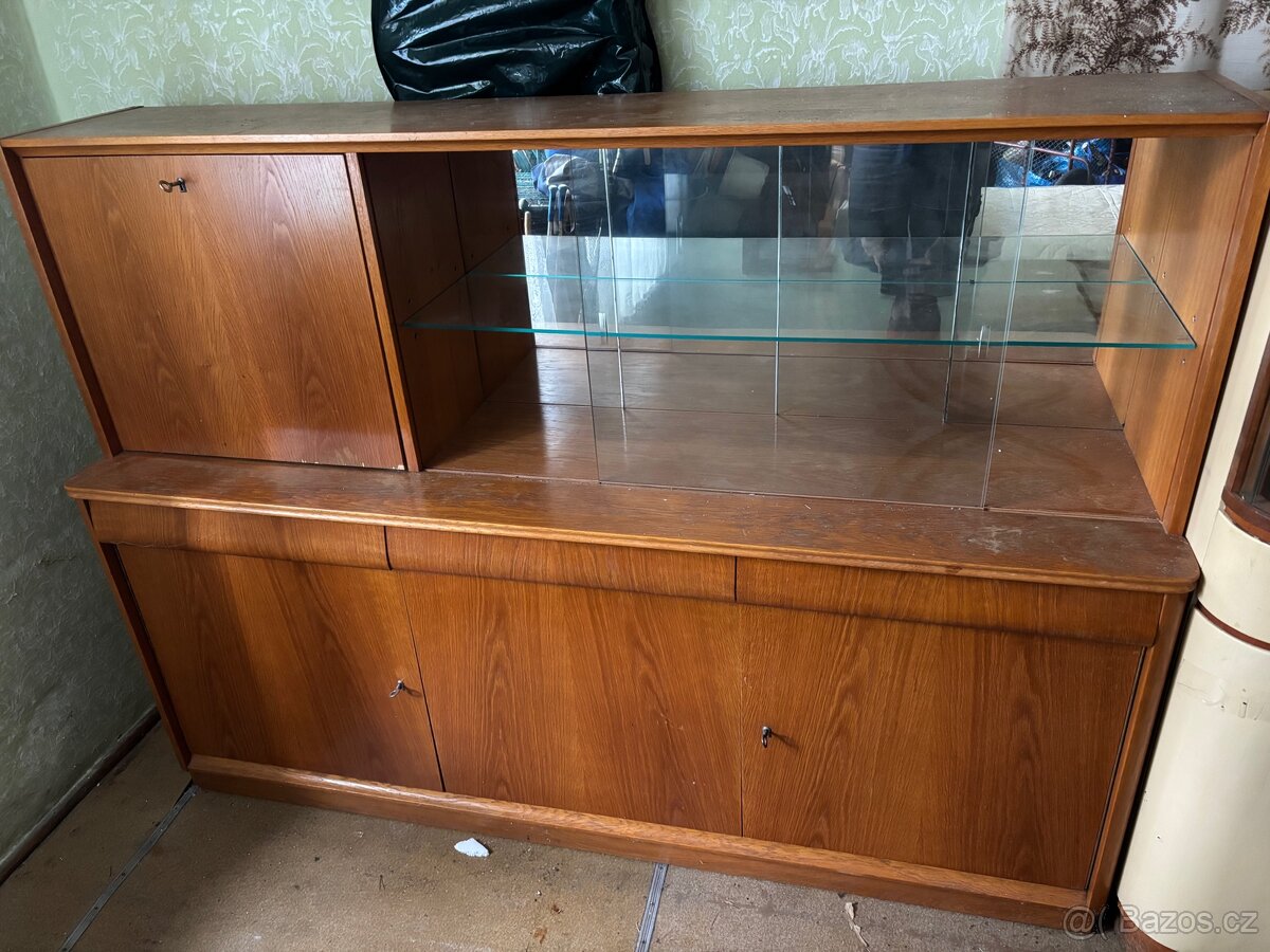 Sekretář, vitrína z 60. let - [3.4. 2026]Prodám retro vitrínu, obývací stěnu, viz foto.