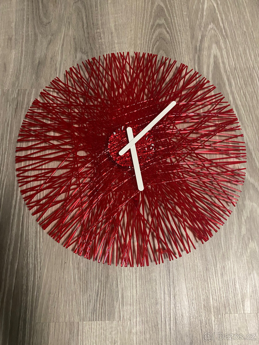 Prodám designové hodiny německé značky Koziol. Průměr 45 cm, tmavě červená barva, kvalitní lehký plast, na 1 baterii AA. Výborný stav, funkční, jako nové.