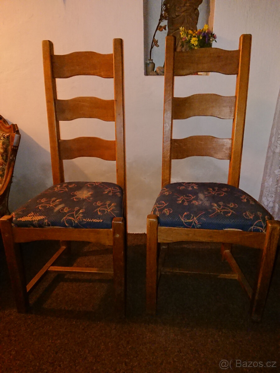 Prodám 4 židle masiv dub. Čalounění původní. Cena za jeden kus.