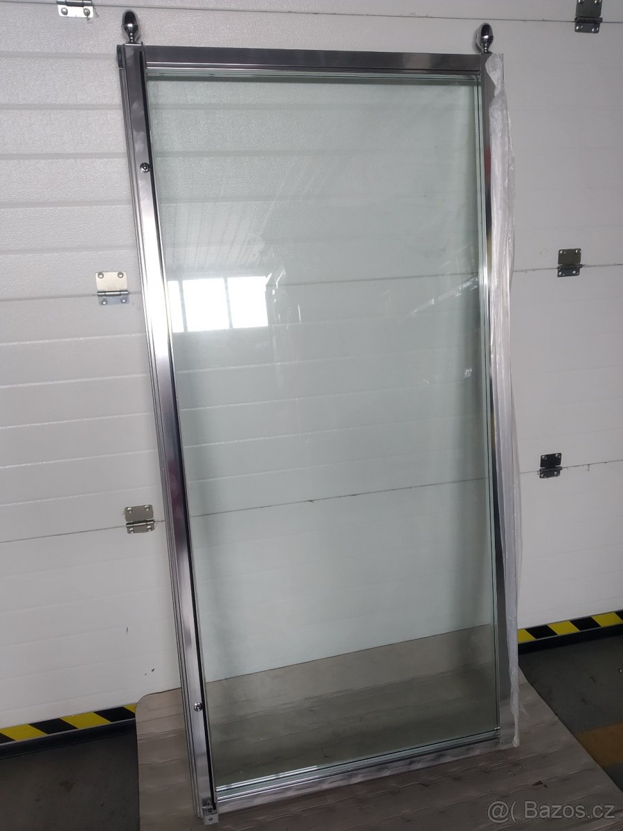 rozměry 90x181/189x7,5 (š,v,h,). Tvrzené sklo s chromovým rámem.