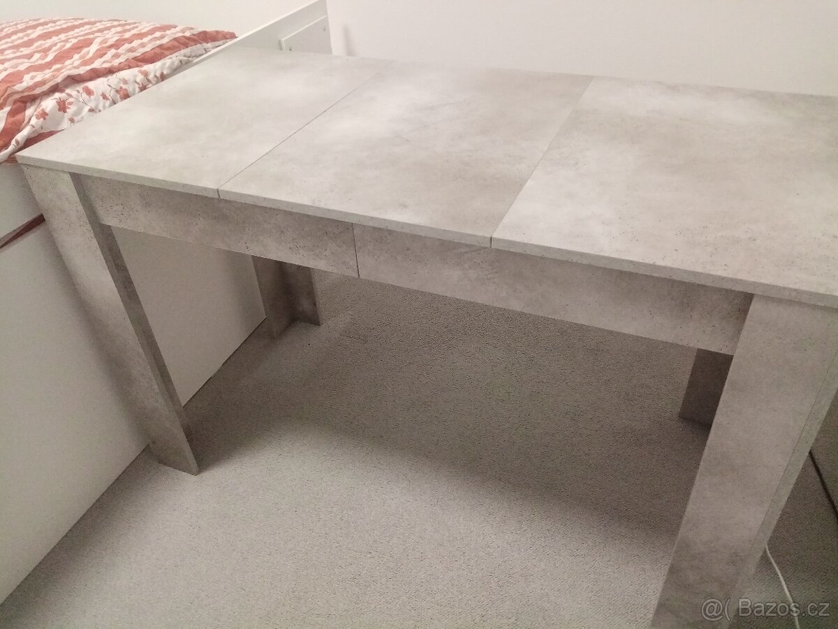 Dobrý den.Prodám úplně nový, nepoužitý jídelní stůl z důvodu, že mi nevyhovují rozměry(nevejde se tam,kam potřebuji).Dezén stolu je imitace betonu. Rozměry stolu jsou 60*120 cm, výška je 76 cm.