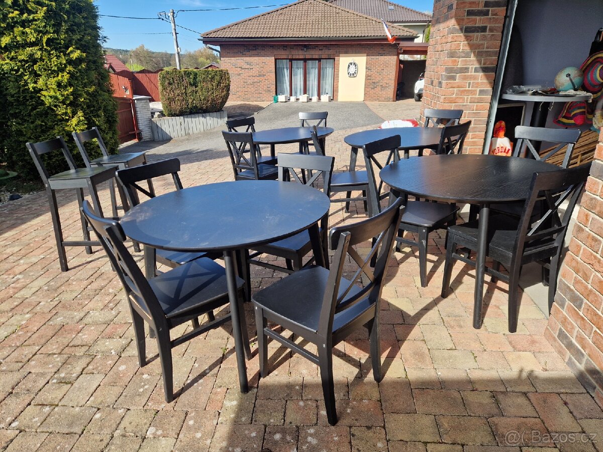 Prodám 4Ks stolů a 13ks židlí a dvě barové židle stav jako nové.