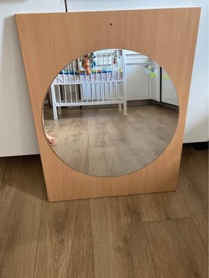 Prodám zrcadlo. Zrcadlo není poškrábané a je přidělané ke dřevěné desce kterou lze přidělat na zeď (viz foto). Cena 400 Kč.