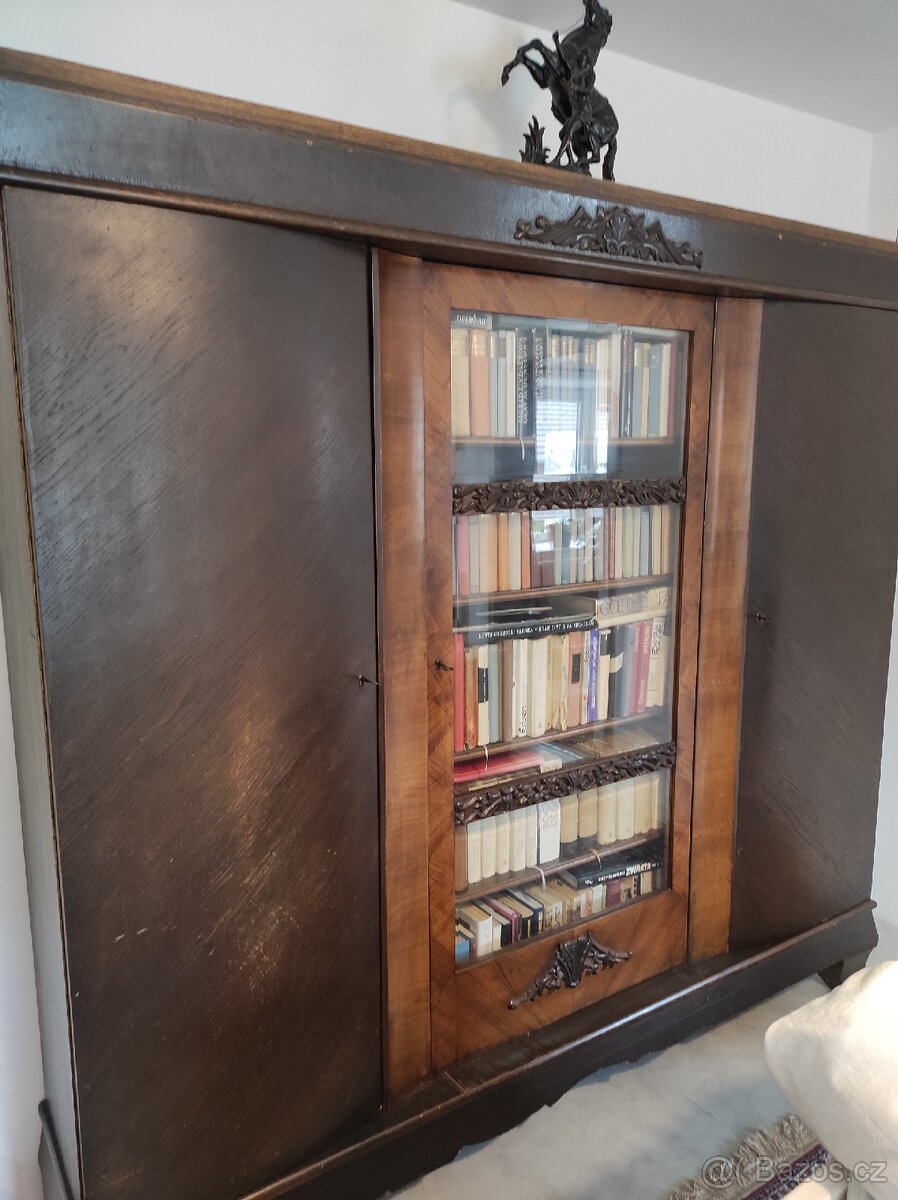Knihovna rohová s oblými dveřmi - [25.4. 2026]Prodám knihovnu rohovou hloubka 500, výška 1930mm v klasickém stylu vhodný do interiérů historických nemovitostí. Nábytek je nepoužitý, pohledové laťovkové desky jsou dýhované ořechovým dřevem. Vnitřní desky jsou dýhované dřevem z mahagonu. Ozdobné l ...