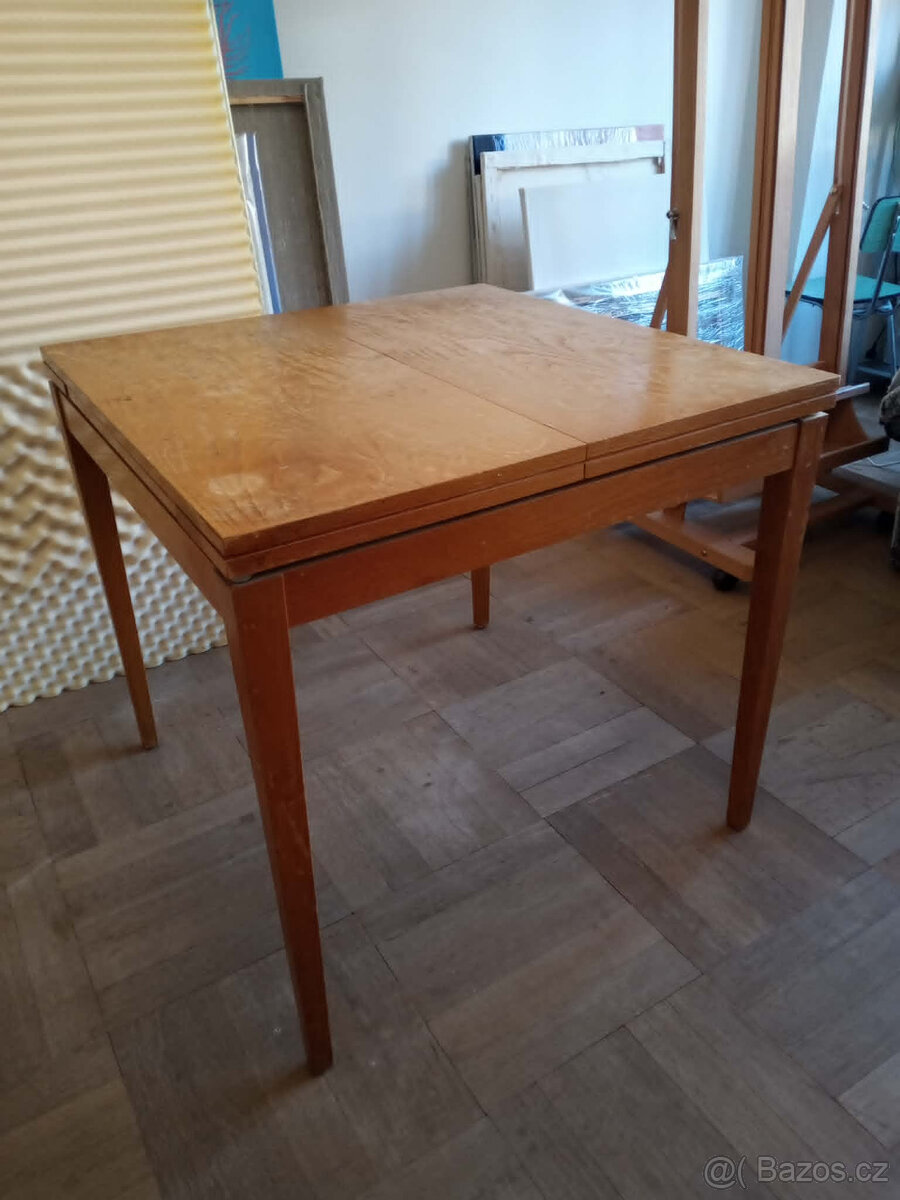 Prodám retro rozkládací stůl. K osobnímu předání v Brně. Po rozložení rozměry: 130x80cm
