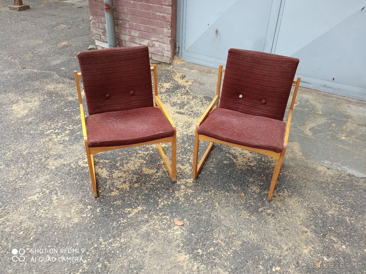 Křeslo párové, konstrukce masivní dřevo, čalounění vhodné k renovaci, cena za kus