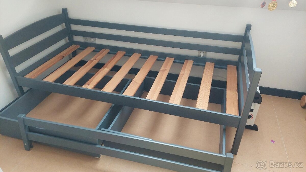 Postel - [30.3. 2026]Prodávám z důvodu stěhování Prodej dětské postele na stěhování, délka 200 cm x šířka 90 cm , se zábradlím.