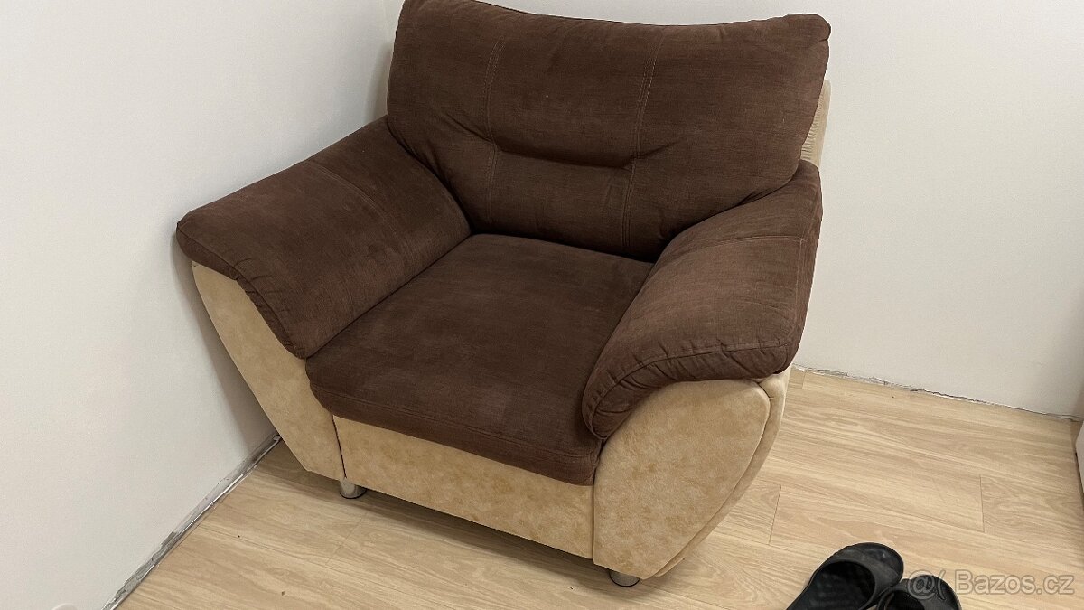 Rozkládací pohovka - sedačka + 2x křeslo - [28.4. 2026]Rozkládací gauč. Sedací souprava. + 2 křesla. Běžné známky používání. Rozměry gauče: 230/182.