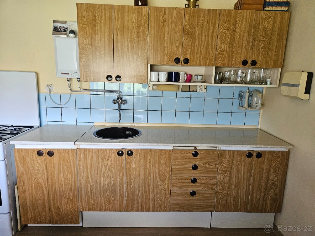 Starší kuchyňská linka vhodná např.na chatu včetně funkční mikrovlnné trouby. Při rychlém jednání možná sleva.