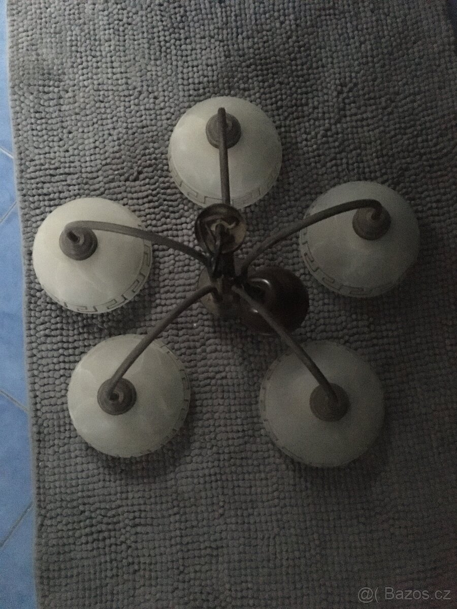 Prodám dva kusy pětiramenných lustrů včetně úsporných žárovek (kus 600)