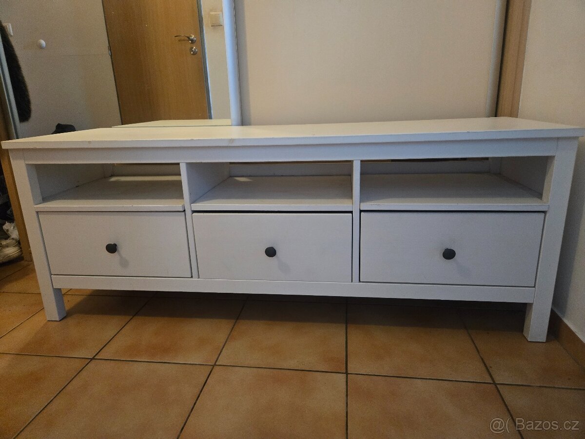 Prodám tv stolek Hemnes z IKEI. Původní cena 7999kc viz foto. Nyní za 1500Kč. Vršek je místama mírně poškrábáný viz foto.
