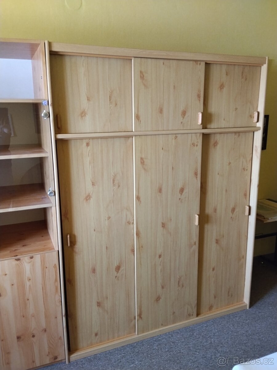 Peřináč, noční stolek do ložnice a polička - [24.4. 2026]Prodám dřevěné skříně a komody ve stejném dekoru do ložnice či jinam, pěkný dekor dřeva.