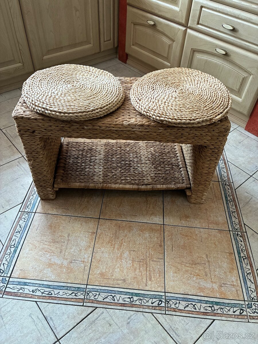 Prodám proutěnou lavici vhodnou jako dekoraci či k posezení. K lavici jsou dva podsedáky.