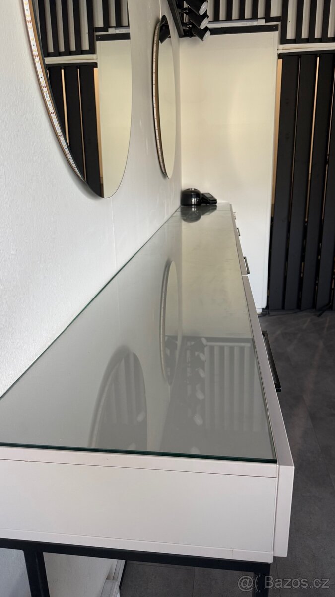 Prodám kosmetický stolek dělaný na míru od stolaře s železnou konstrukcí +ochrané sklo stav jako nový