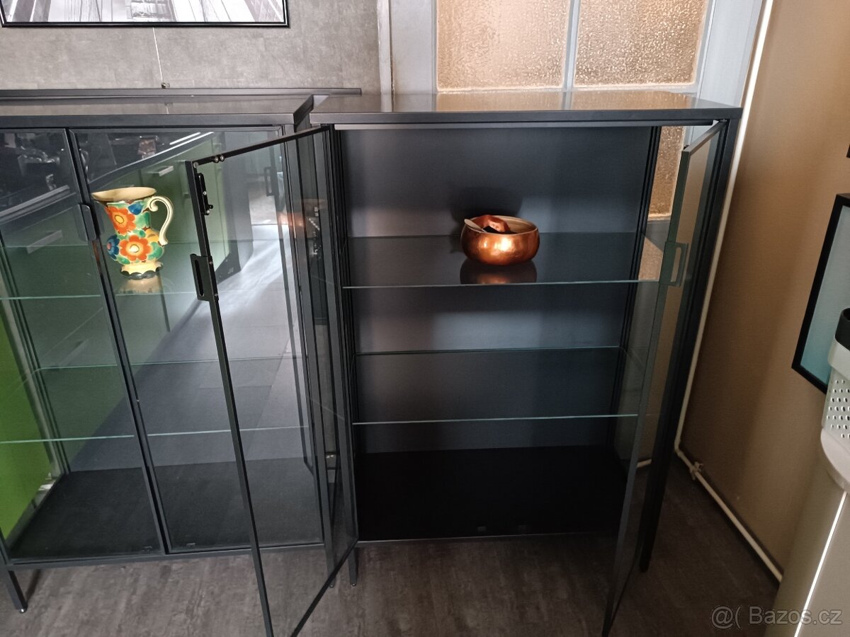 Velmi zachovalá elegantní minimalistická - kov/sklo. Rozměry: šířka 80 cm, hloubka 36 cm, výška 120 cm. Jako nová. Celkem existují 2 ks, cena za jednu 999 CZK